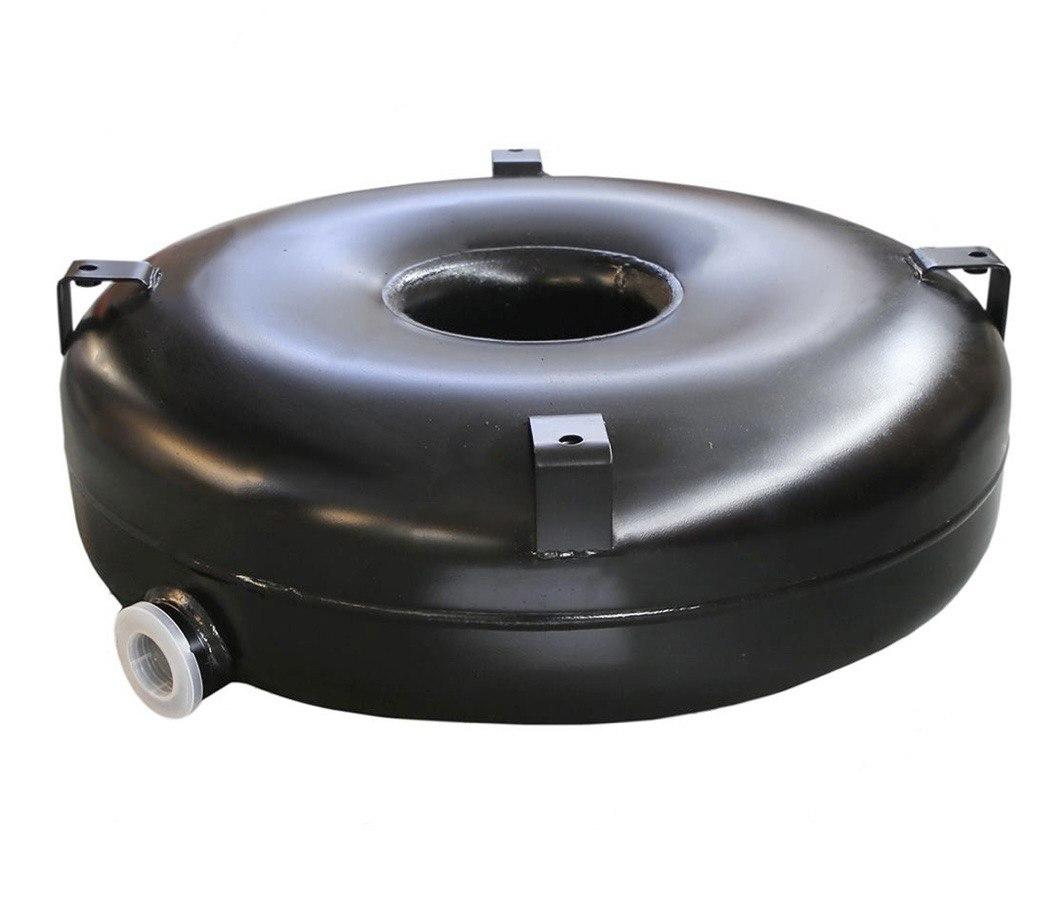 Баллон газовый тороидальный с наружной горловиной выполнен из качественных стальных деталей – днища, обечайки и фланца методом сварки (в соответствии с тех. регламентом Таможенного союза ТРТС 018/2011). Баллон устанавливается под днище автомобиля. Для надежного крепления к кузову ТС, на верхней части сосуда имеются 4 кронштейна с отверстиями